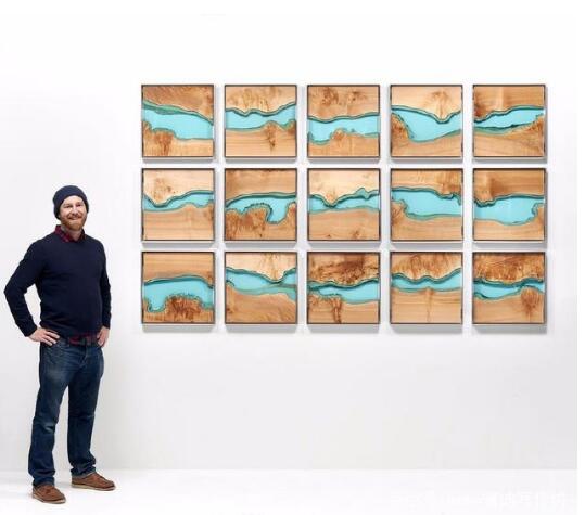 他在自然景觀中找到靈感,并將景觀轉(zhuǎn)譯到他的工作中。他的River Collection 一系列錯(cuò)綜復(fù)雜的設(shè)計(jì)和手工制作的桌子。嵌入的青綠色玻璃“河”貫穿每一塊木頭。木材自然的不齊邊緣和他們生動(dòng)的紋理提供了完美的“岸”,這些都是在模仿河流。