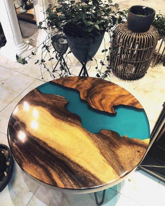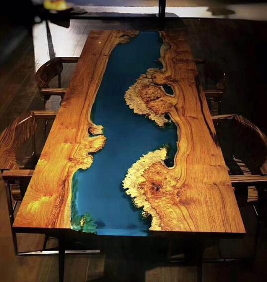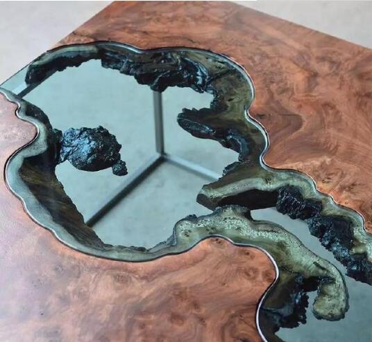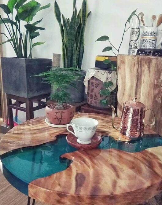 慢慢的河流桌的設(shè)計(jì)理念進(jìn)入國(guó)內(nèi),開(kāi)始有一些廠家開(kāi)始用樹(shù)脂制作河流桌,成品也是相當(dāng)?shù)拿垒喢缞J。下面我們可以欣賞一些成品。